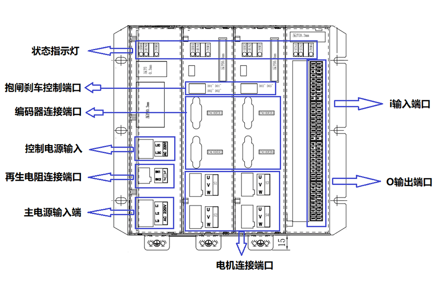 車床機械手控制系統——四軸驅控一體EC-L4箱體整體接線說明:
