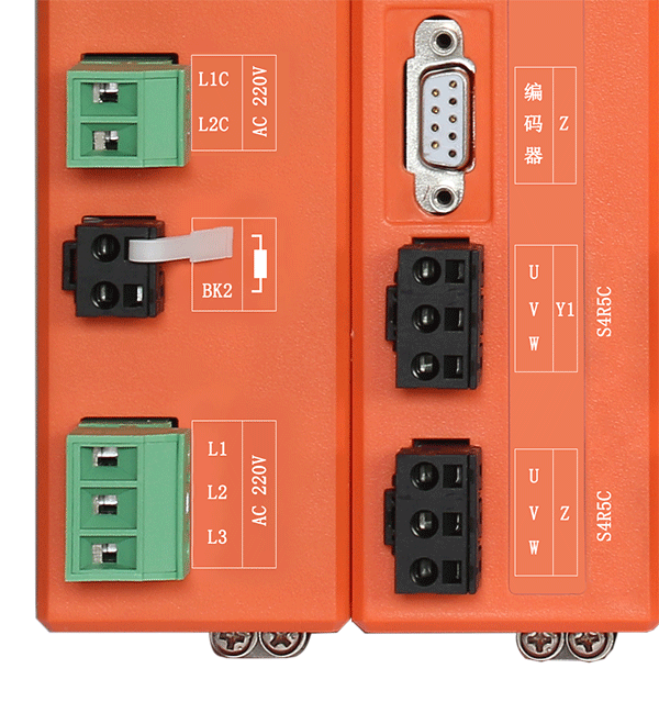 L1C | 輔助電源端子 | 交流單相220V | 輔助電源為內部控制電路電源。進電主電源線使用 3 芯多股銅電纜線,單芯橫截面積 2.5 平方毫米,絕緣耐壓>=600V |