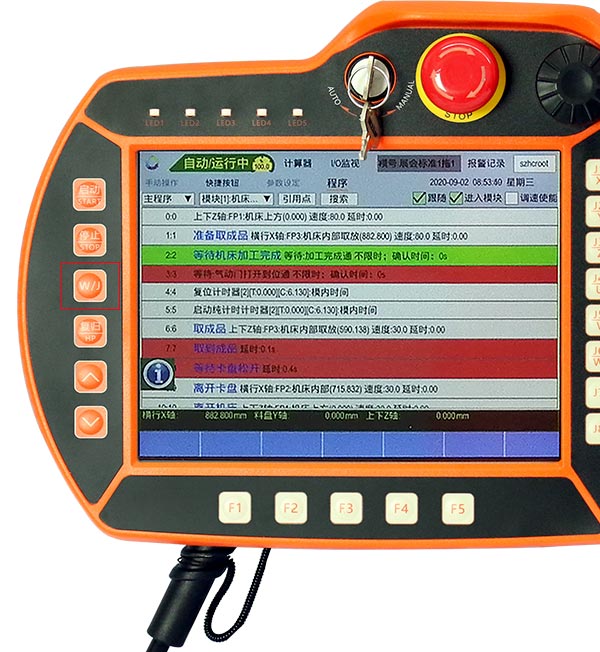 華成系列六軸機器人控制系統,型號:ES-R6。首先清楚世界坐標在哪,按鍵功能鍵“W/J”如下圖: