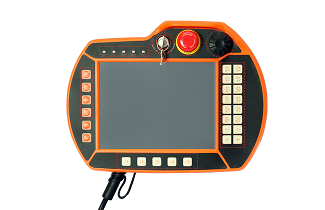 關(guān)節(jié)機(jī)器人手控器,為華成自主研發(fā)的六軸關(guān)節(jié)機(jī)器人控制系統(tǒng),可滿足擴(kuò)展7、8軸的應(yīng)用。如下圖,為華成系列關(guān)節(jié)機(jī)器人手控器的操作面板按鍵介紹: