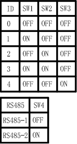 4.撥碼開關編號4為選擇485通信口,撥向ON為485-2口,否則為485-1口;
