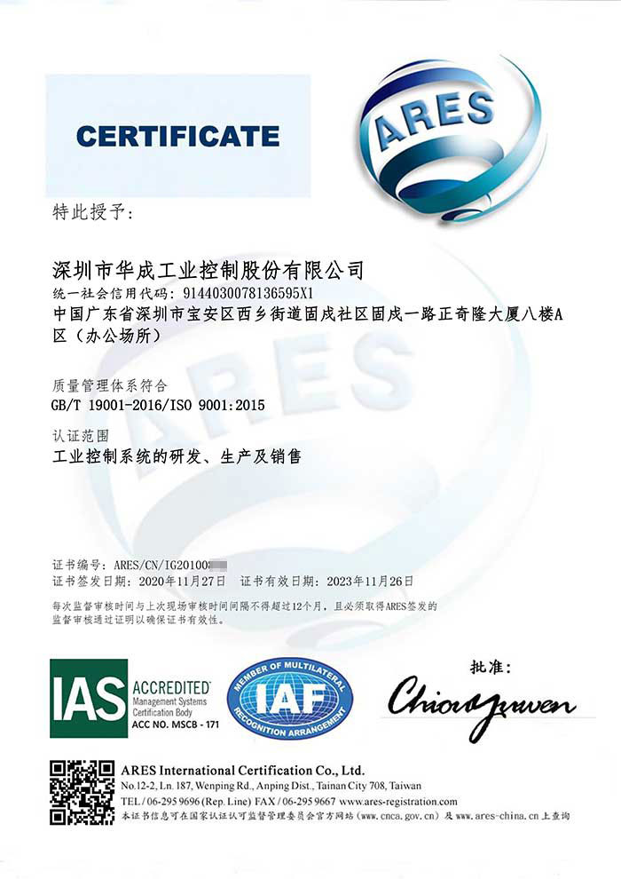 近日,華成工控順利通過ISO9001:2015質(zhì)量管理體系認證,這標(biāo)志著華成將步入規(guī)范化、標(biāo)準(zhǔn)化、科學(xué)化的現(xiàn)代企業(yè)管理軌道。