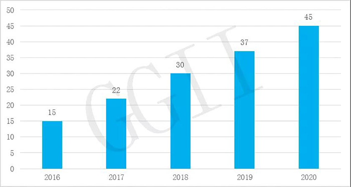 2016-2020年中國驅控一體控制系統廠商數量(單位:家)