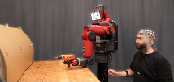 通過(guò)監(jiān)測(cè)大腦活動(dòng),系統(tǒng)可以實(shí)時(shí)檢測(cè)一個(gè)人在機(jī)器人完成任務(wù)時(shí)是否注意到錯(cuò)誤。使用測(cè)量肌肉活動(dòng)的界面,該人然后可以進(jìn)行手勢(shì)滾動(dòng)并選擇正確的選項(xiàng)供機(jī)器人執(zhí)行。