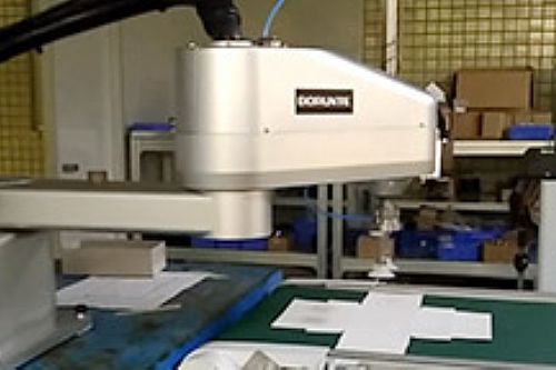 • 華成專用SCARA機器人控制系統,能高效抓取物品并完成包裝操作。針對有傳送帶跟蹤的應用場景,利用視覺跟隨工藝包,通過視覺定位與外接編碼器獲取位置信息,實現產品跟抓,保障包裝過程的準確與穩定,提高生產效率。